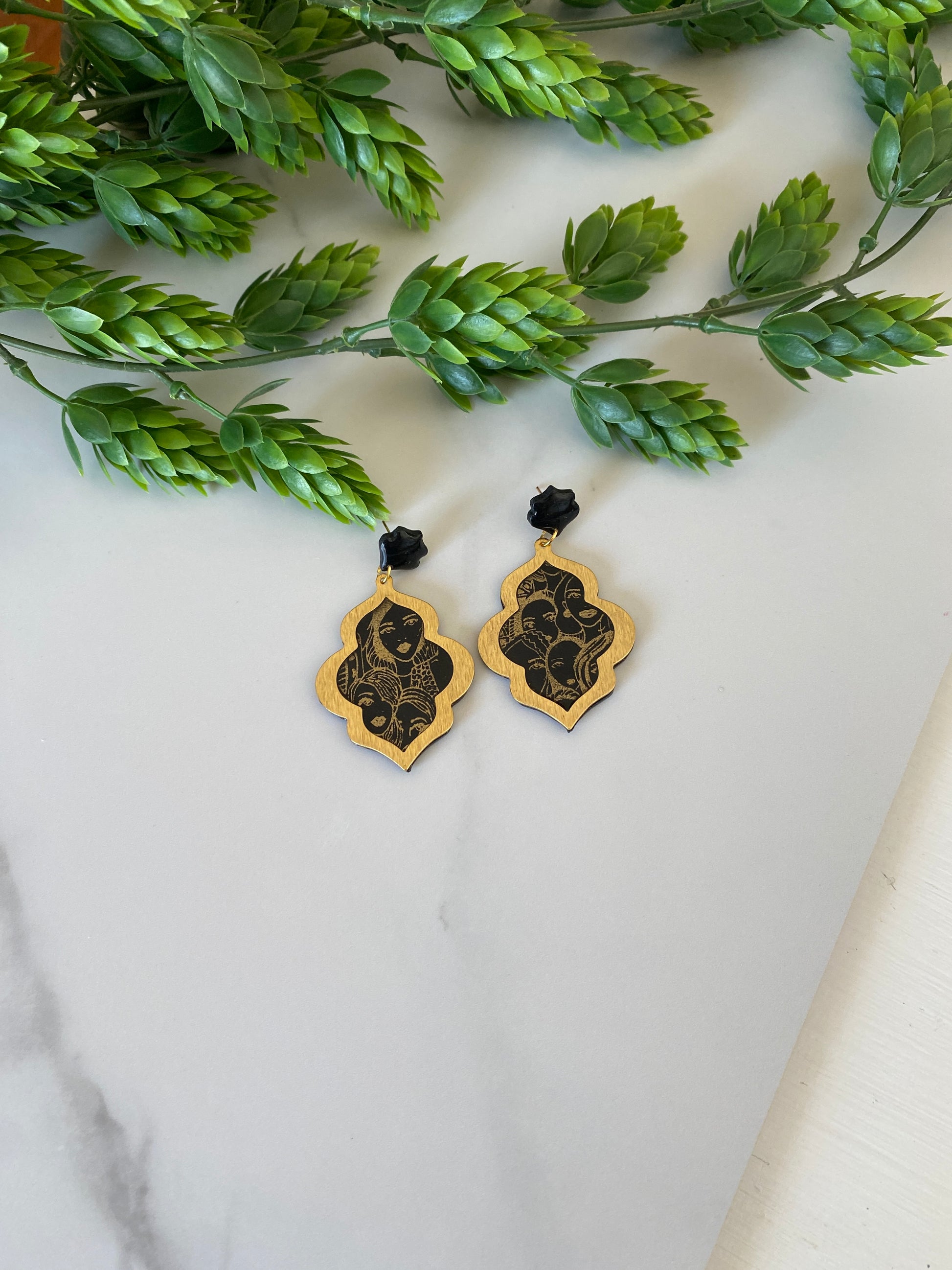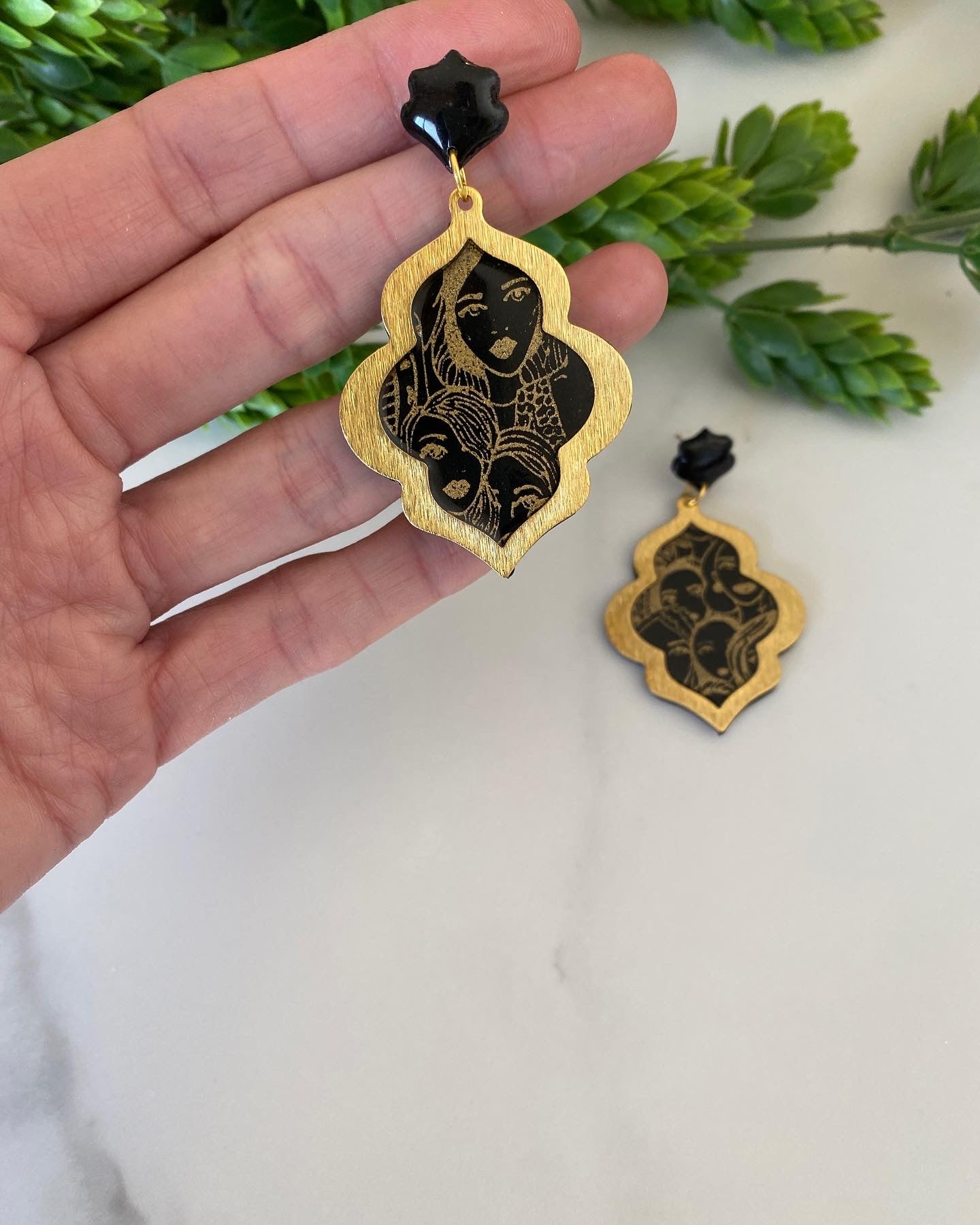 Josephine is sleek and classy. She can sing - she can spy - she can fight injustice. Black base with a gold women screen-print, encased in a golden brass charm and resined.