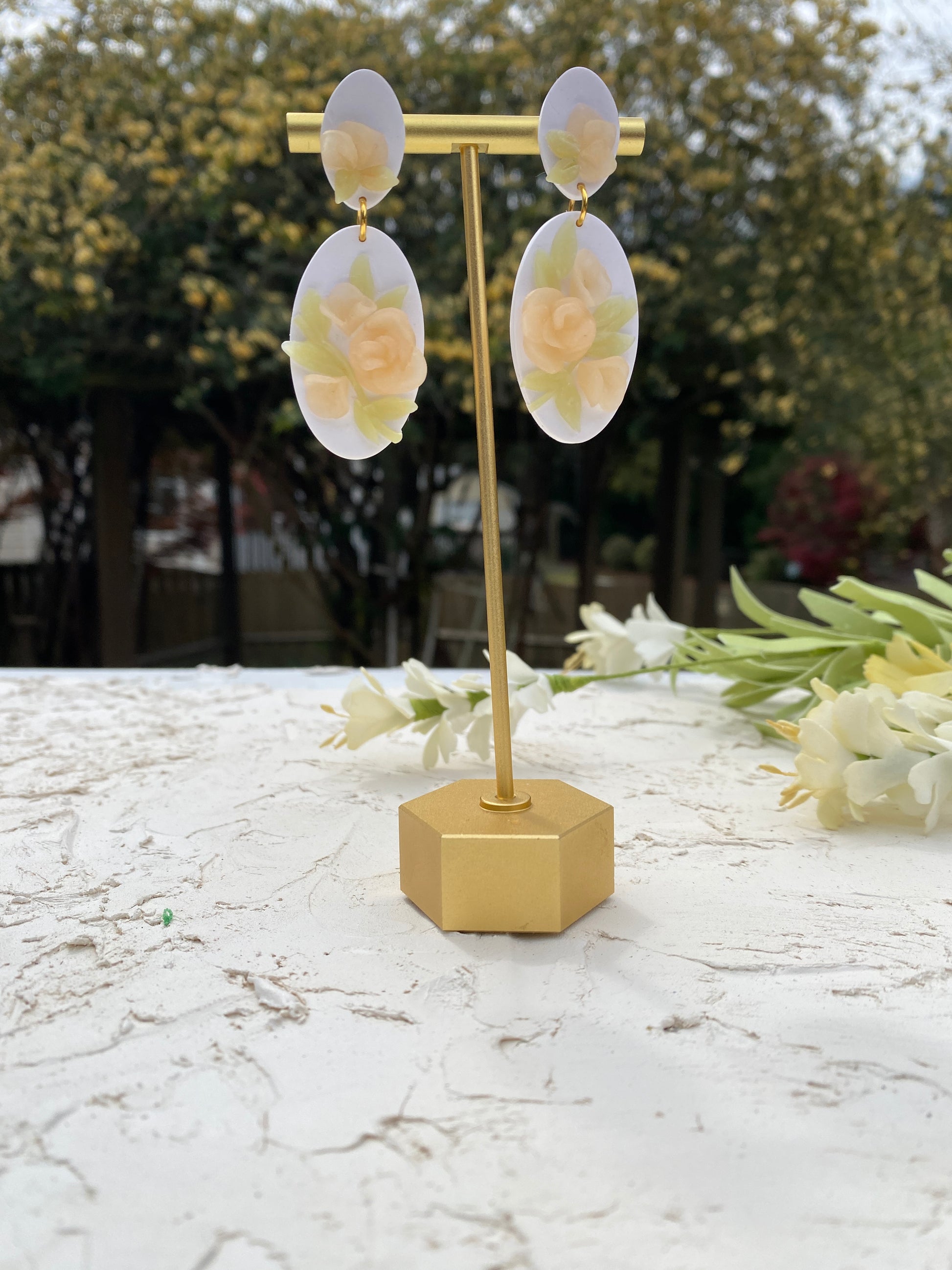 These have a white clay background and are filled with a light tan translucent floral and light sage translucent leaves and vines. A stunner!